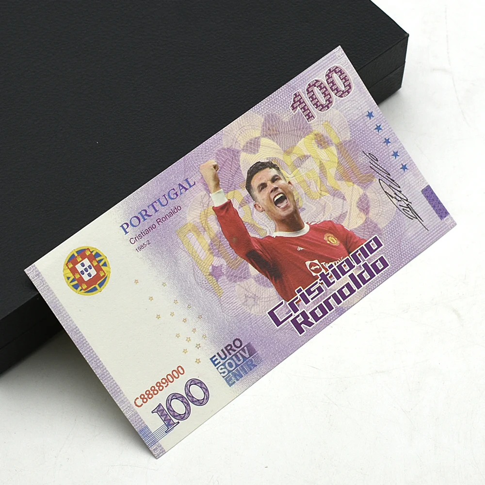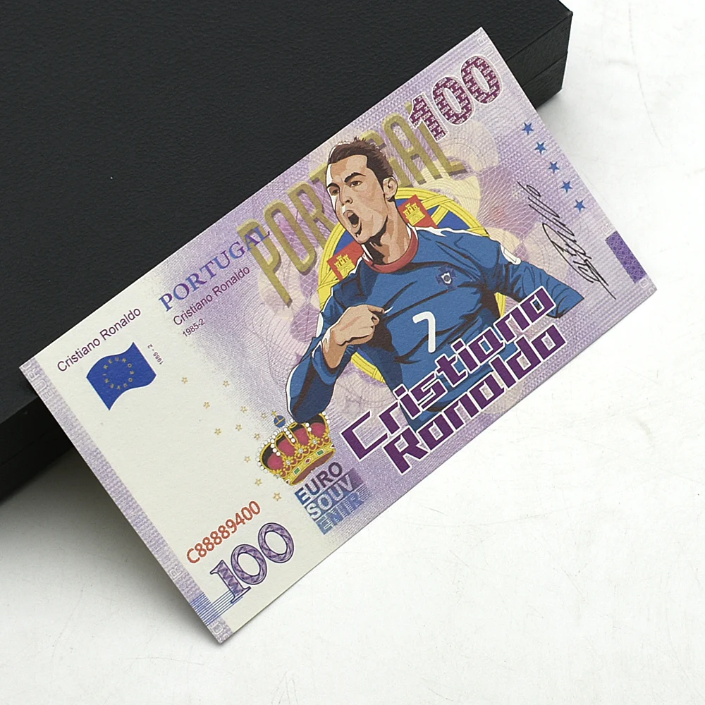 10pc Cristiano Ronaldo 100 Euro Commemorative Banknote with UV Serial Number Paper Money Collection Gift